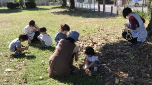 お散歩シーズン到来❣️【ハイジの森】 2020年11月2日 お散歩シーズン到来❣️ 近所の公園にどんぐり拾いに行きましたよ! テラスではどんぐりでポットン遊びを楽しんだり、シャボン玉あそびも大好きな子供達です。