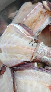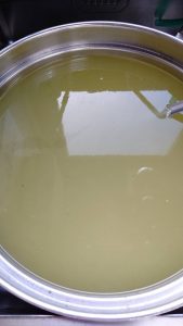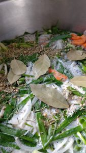 フランス料理の調理法で、お魚のだし汁を丁寧に作っています。