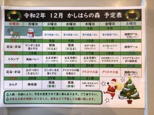 かしはらの森の12月のレクリエーション予定表です‼︎