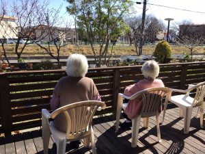 天気が良く暖かい日は、あいゆう自慢のテラスで日光浴。