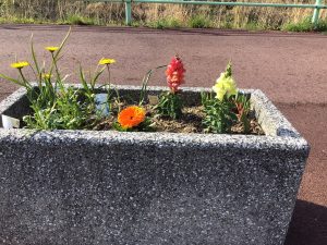 花壇会様は町内だけでも川沿いの花壇をたくさんの花で綺麗にしていこうと活動されています。