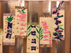 こちらは藤の花の作品です。色や配置など皆さんに自由に作って頂いています
