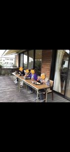 デイサービスのテラスで昼食を