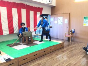 ご利用者様も餅つきを楽しそうに見て下さったので良かったです!