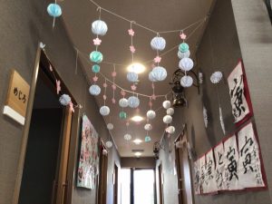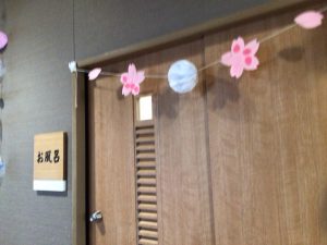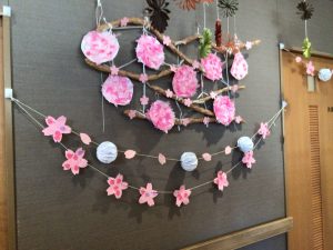 桜の季節がもうすぐなので利用者様と一緒に桜の工作をしました。