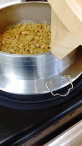 ご飯は釜戸で炊いています。