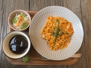 500円でサラダ+ドリンクが付いてます♪パスタとドリアが日替わりです😄