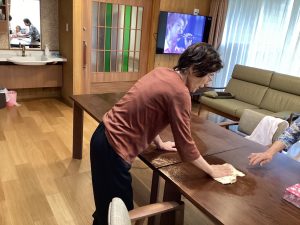 掃除やテーブル拭き等の家事を行ったりして過ごしてます。
