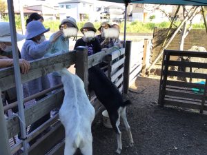倶楽部では天気の良い日には、やぎカフェややぎ小屋へ散歩に出たり、