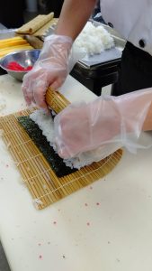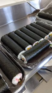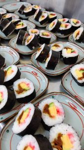 太巻き寿司は食材部スタッフが総出で早朝から巻き上げ、