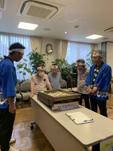 夏祭り開催(^^)/【サロンいづみ】 2024年8月27日 サロンいづみ夏祭り開催(^^)/ みんなで祭りの鉢巻を巻いて、 スマートボール・宝釣り・ストラックアウトなどのゲームを楽しみました!! ゲームの後は、ご褒美のひんやりスイーツで笑顔満載でした