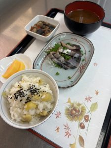食材部では味覚の秋にちなんで旬の食材を使った季節食を御用意致しました。