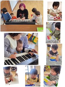 ひなまつり製作【ハイジの森】 2025年2月25日 3月3日に向けて、ひなまつり製作を行いました。 絵の具の感触を楽しみながら、製作をしました。 ピアノボランティアさんと、ピアノの歌に合わせて歩いたり、ピアノを触ってみたりして、楽しみました。