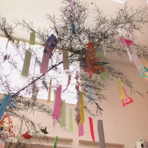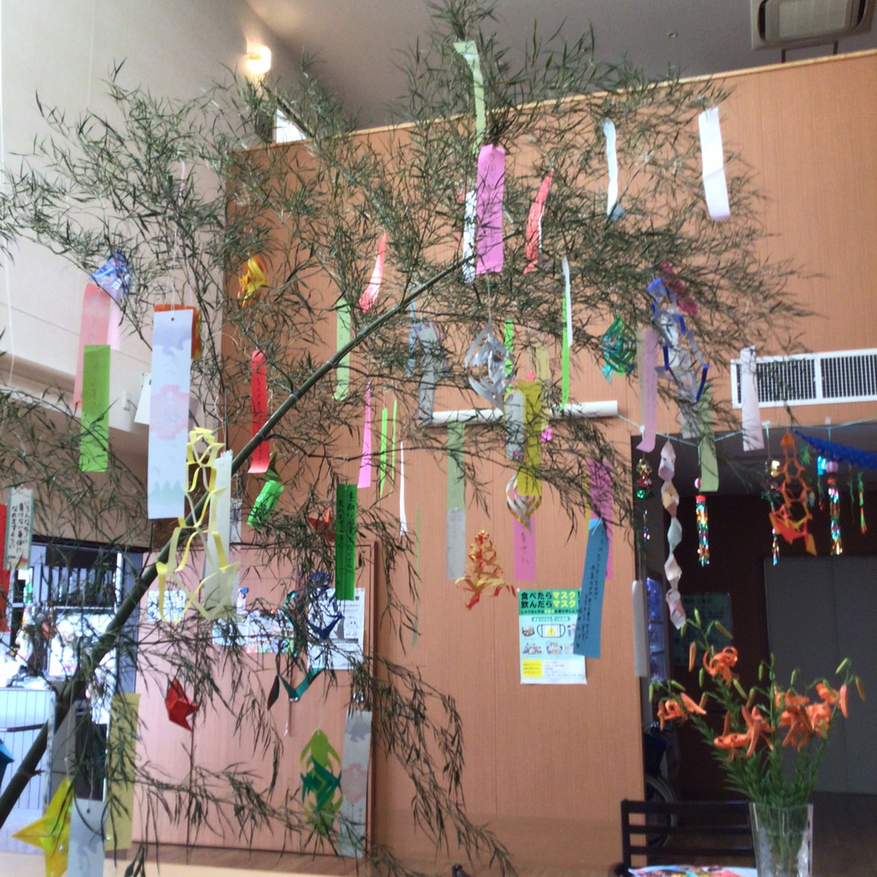 7月7日 七夕飾り 2022年7月7日 あいゆうの森のホールでは 七夕の飾りつけが行われています。 立派な笹の葉には入居者様や職員の願いが書かれた短冊が飾られています。 健康や幸せを願う短冊が多くみられました。 入居者様には季節を感じて頂けるよう 行事や飾りつけを大切にしています。